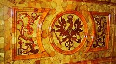 Back to Pushkin. The time is 3.30, so we have to have a lightning tour around the palace. The famous thing about Pushkin, which was hammered home when the excursion was being "sold", is the Amber Room. This is a room entirely decorated with amber, which was stripped bare and removed for safe keeping during the war. Unfortunately it never go to where it was being kept and has never been found. The room now is being gradually restored to its former glory with only a couple of panels remaining.