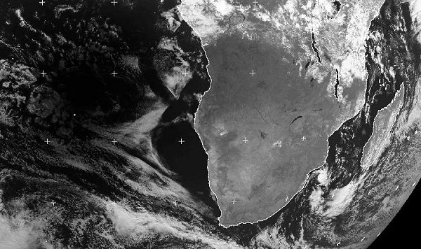 Not a cloud over Zambia and Zimbabwe at 12.00UT. Approaching shadow left of centre